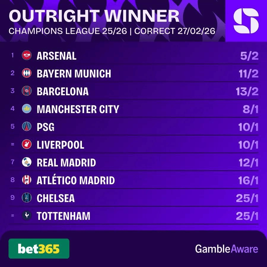 阿森纳抽到了上上签。八分之一决赛打勒沃库森,德甲目前只排第六,枪手晋级概率85.8%。四分之一决赛的对手是博德闪耀和葡萄牙体育之间的胜者,两个都不是顶级强队。半区里没有传统豪门,一路坦途。夺冠赔率3.5遥遥领先,成了头号热门。